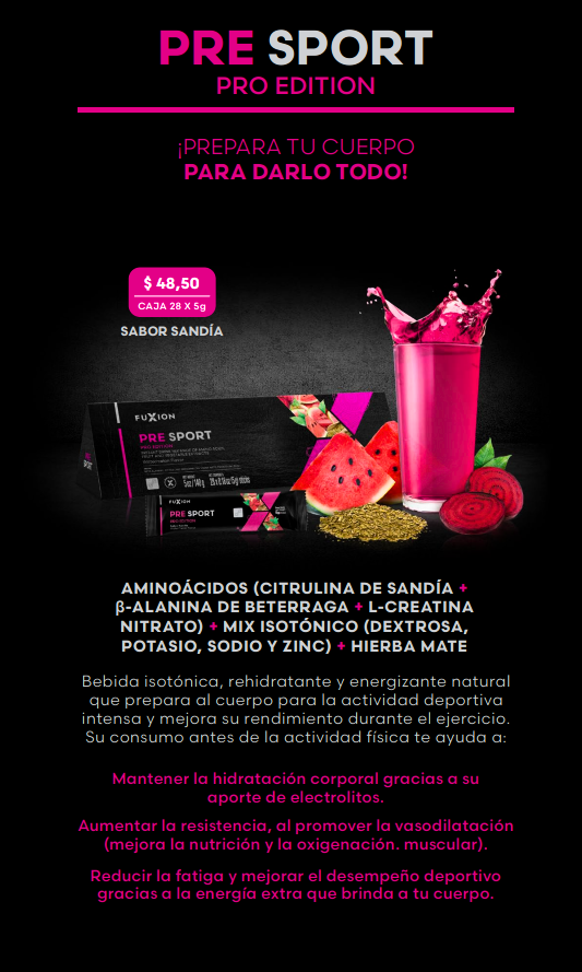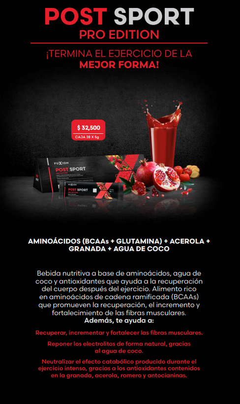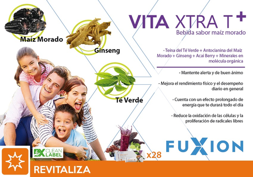 Deliciosa bebida sabor maíz morado, funcional, antioxidante y energizante; creada por FuXion para mantenerte con energía durante el día, mejorar tu rendimiento físico y el buen ánimo.