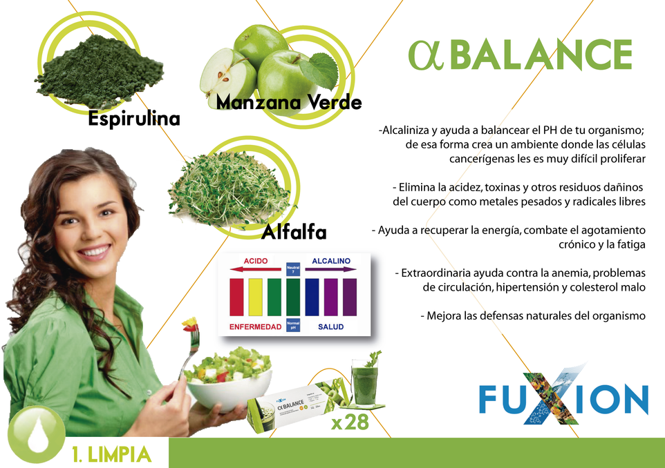 Saludable bebida a base de vegetales verdes, creada por FuXion para la limpieza de órganos internos y desintoxicación de la sangre, así como para equilibrar el PH del organismo.