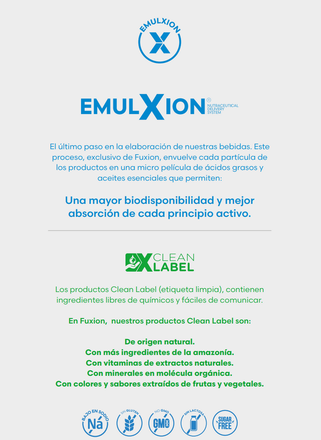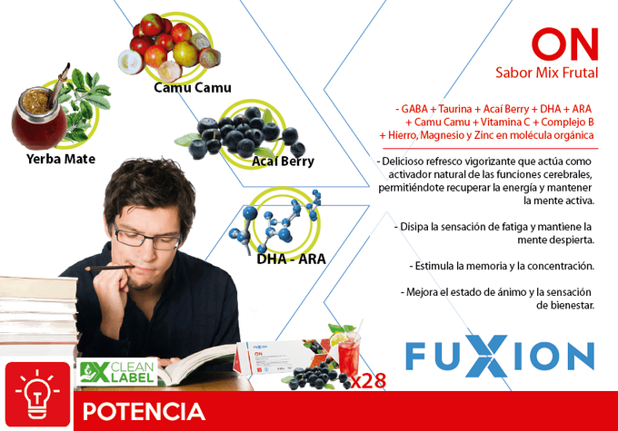 Deliciosa bebida funcional sabor mix frutal, creada por FuXion para mejorar los procesos mentales como la concentración, la memoria y el enfoque.