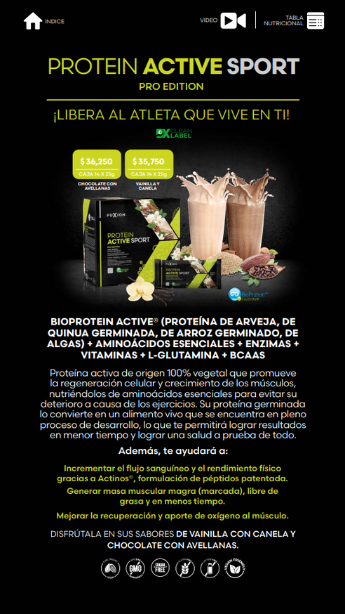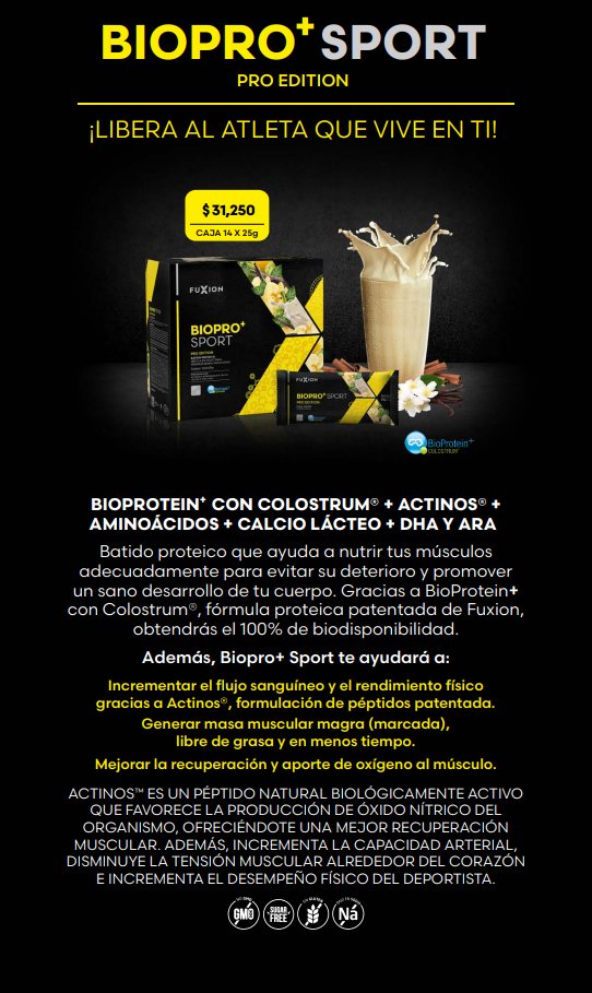 Delicioso batido a base de la proteína de la más alta calidad, creada y patentada por FuXion para mejorar tus defensas, mejorar el perfil protéico de tu dieta y fortalecer los huesos
