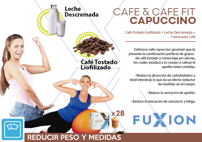 Delicioso café capuccino gourmet, creado por FuXion para que alcances el peso ideal, controles el apetito y reduzcas medidas.