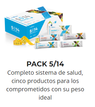 Pack 5/14 es un programa nutricional que depuran el organismo, optimiza los mecanismos termogénicos del cuerpo y ayuda a la pérdida de peso corporal.